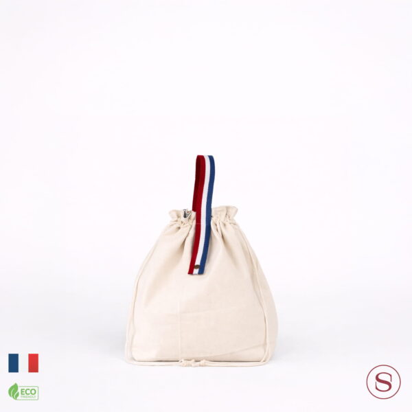 This drawstring pouch bag in Blue/White/Red is made in France with high-quality recycled rPET materials. It features a drawstring closure to seal it shut and keep contents fresh inside. It can be folded when not in use, so it takes up minimal space. Don’t wait any longer to get this must-have for your picnics, hikes, or beach days.
