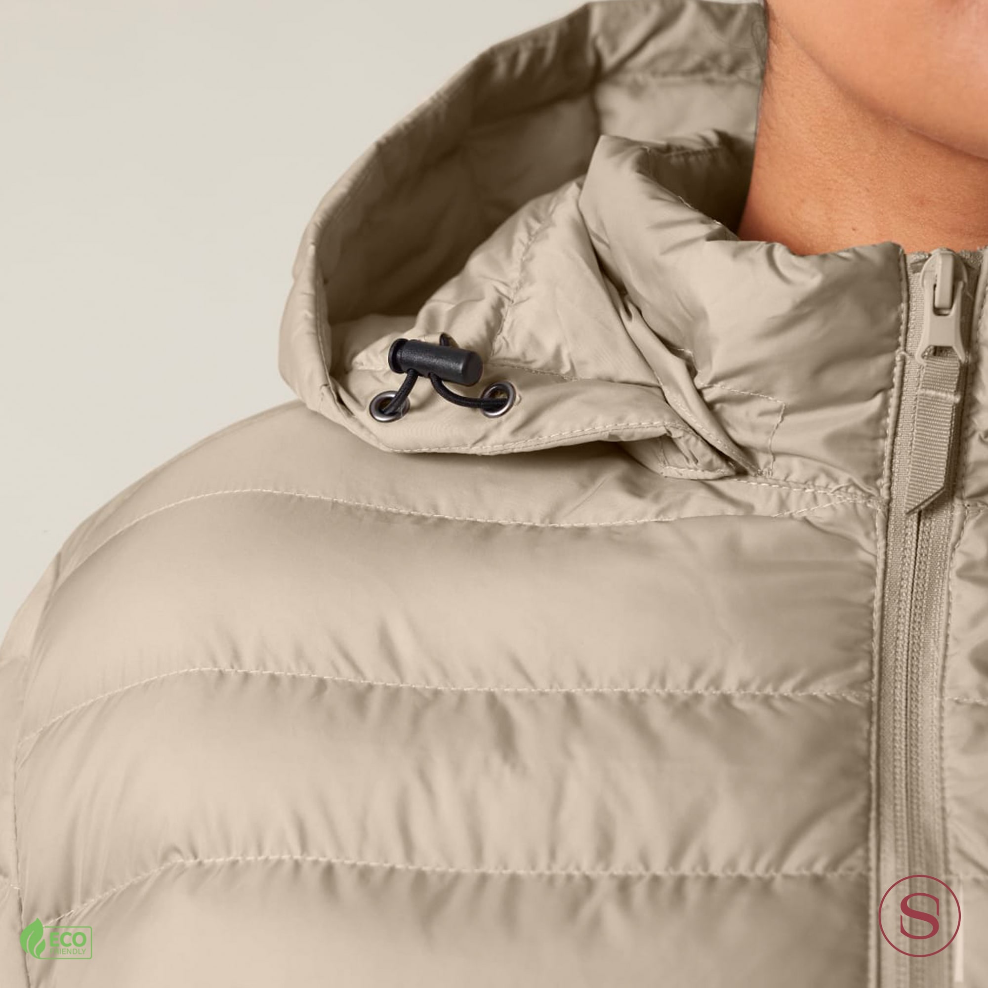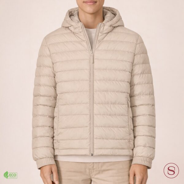 Cette veste matelassée est fabriquée à partir de 100 % de polyester recyclé et comprend une capuche ajustée et détachable. Cette veste matelassée est certifiée par GOTS, Oeko-Tex 100 et approuvée par Peta-Vegan, garantissant qu'elle répond aux normes éthiques et environnementales.