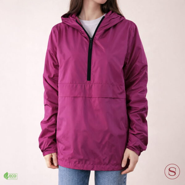Cette veste coupe-vent est fabriquée à partir de 100% de polyester recyclé et présente une coupe normale à enfiler par la tête. Cette veste coupe-vent est certifiée par GOTS, Oeko-Tex 100 et approuvée par Peta-Vegan, garantissant qu'elle répond aux normes éthiques et environnementales.