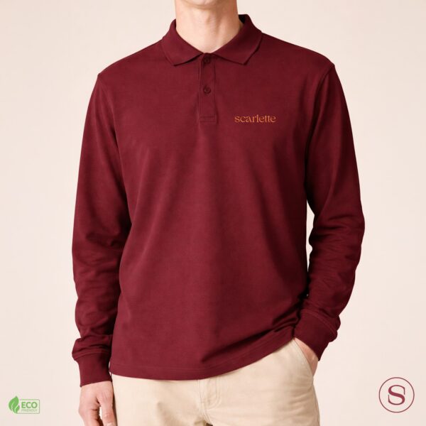 This long sleeve polo is made of 100% organic cotton, features a classic cut. It has a casual , unisex medium fit. This long sleeve polo is certified by GOTS, Oeko-Tex 100, and Peta-Approved Vegan, ensuring it meets ethical and environmental standards.
