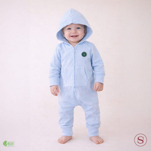 This children onesie made of 80% organic cotton, 20% recycled polyster, features a fitted cut. This baby body is certified by GOTS, Oeko-Tex 100, and Peta-Approved Vegan, ensuring it meets ethical and environmental standards.