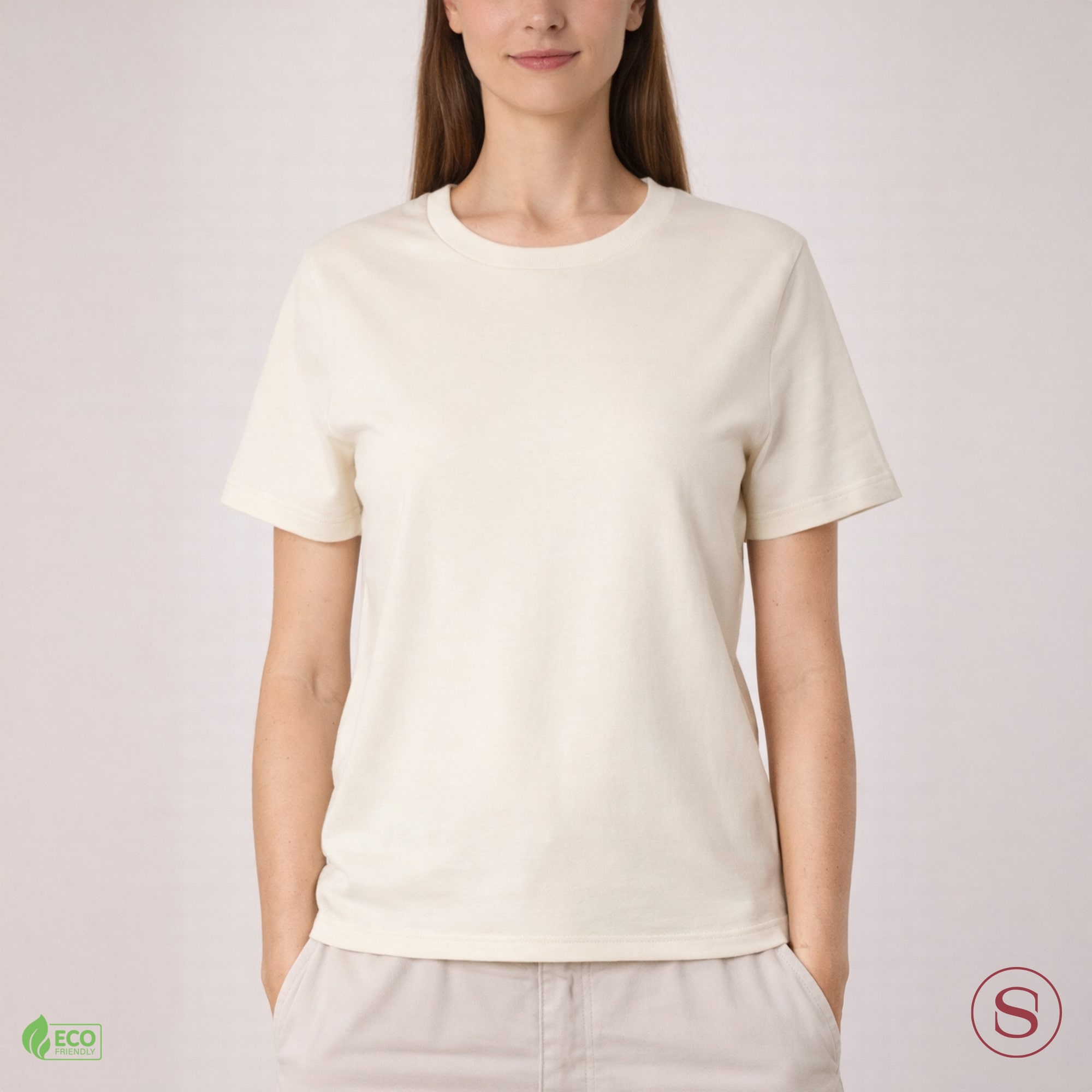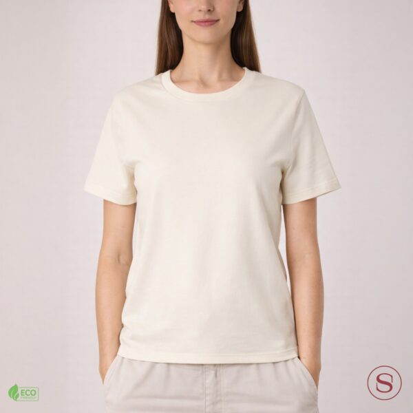 This Regular woman t-shirt is made of 100% organic cotton, combining quality, comfort, and eco-friendliness. This Regular T-shirt features a casual medium fit and holds certifications from GOTS and Oeko-Tex 100, ensuring ethical and environmental compliance.